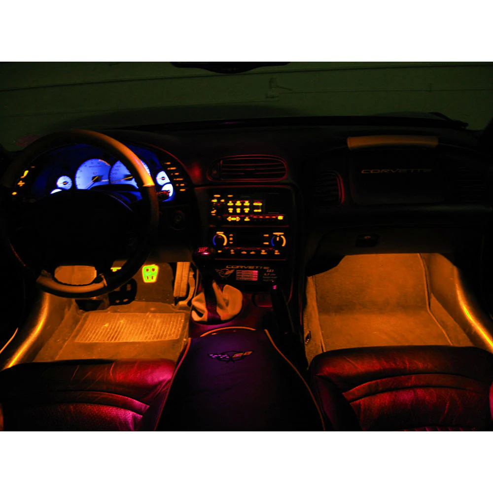 To view installation instructions, click here. These are Plug and Play and take only about 15 minutes to install. Plugs directly into the factory light housing and mounts with commercial strength adhesive backing. Each kit comes with 2 led strips with 18 SUPERBRIGHT LEDs. Provides a wide area of light for the complete footwell area.